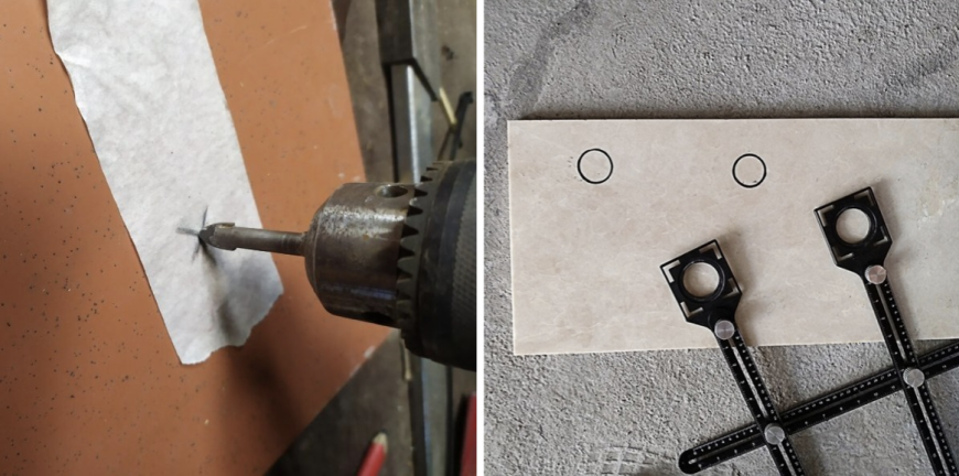 Иногда имеет смысл сделать отверстия профессиональным гидроабразивный станком до укладки плит на стены. Особенно если речь идет о крупногабаритном кафеле или дорогостоящих декоративных элементах.