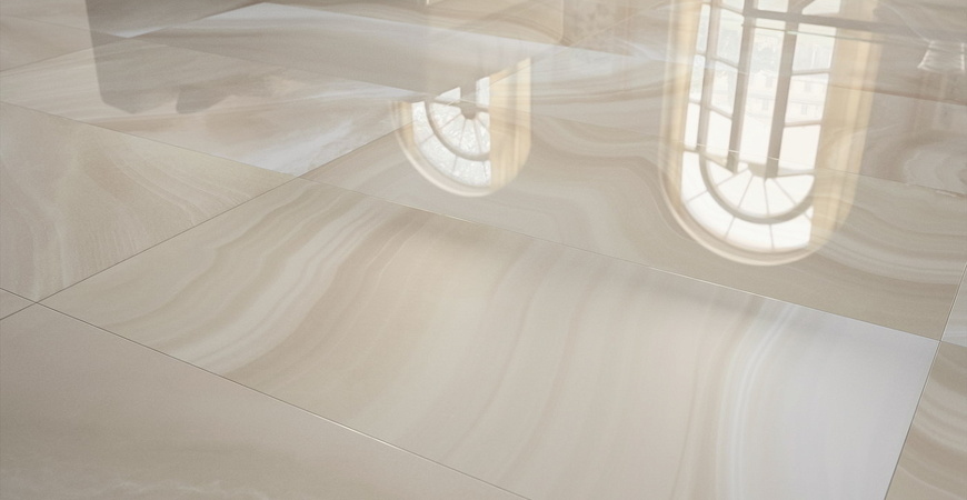 Поверхность полированного керамогранита шлифуют после обжига и полируют до зеркального блеска. В результате он приобретает эффектный глянец, подчеркивающий глубину цвета и рисунка.