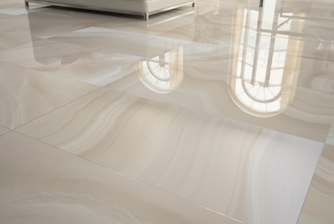Поверхность полированного керамогранита шлифуют после обжига и полируют до зеркального блеска. В результате он приобретает эффектный глянец, подчеркивающий глубину цвета и рисунка.